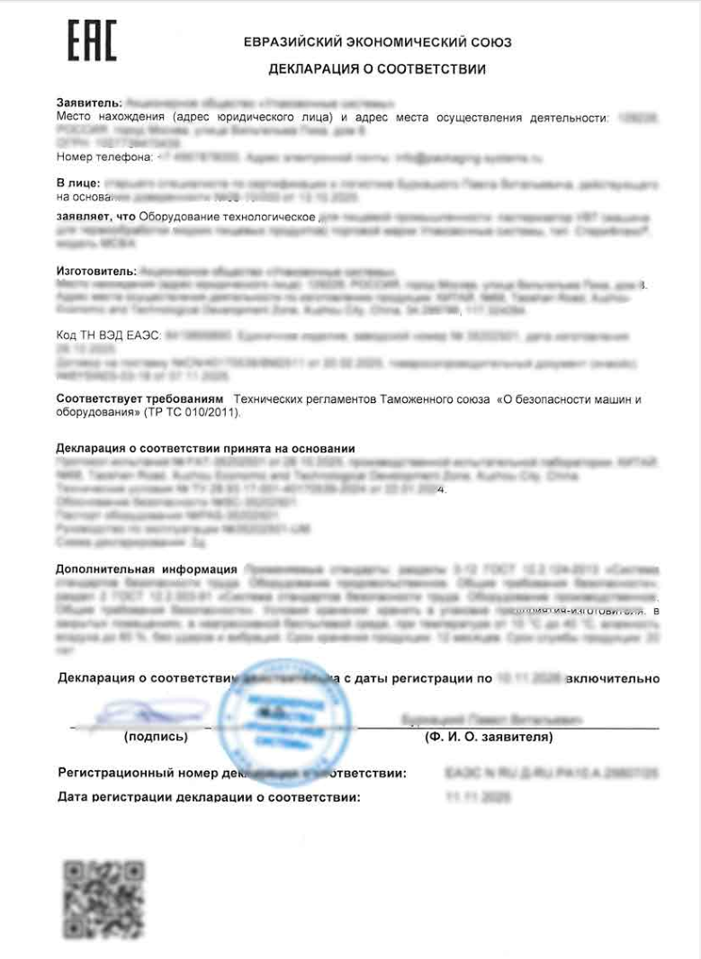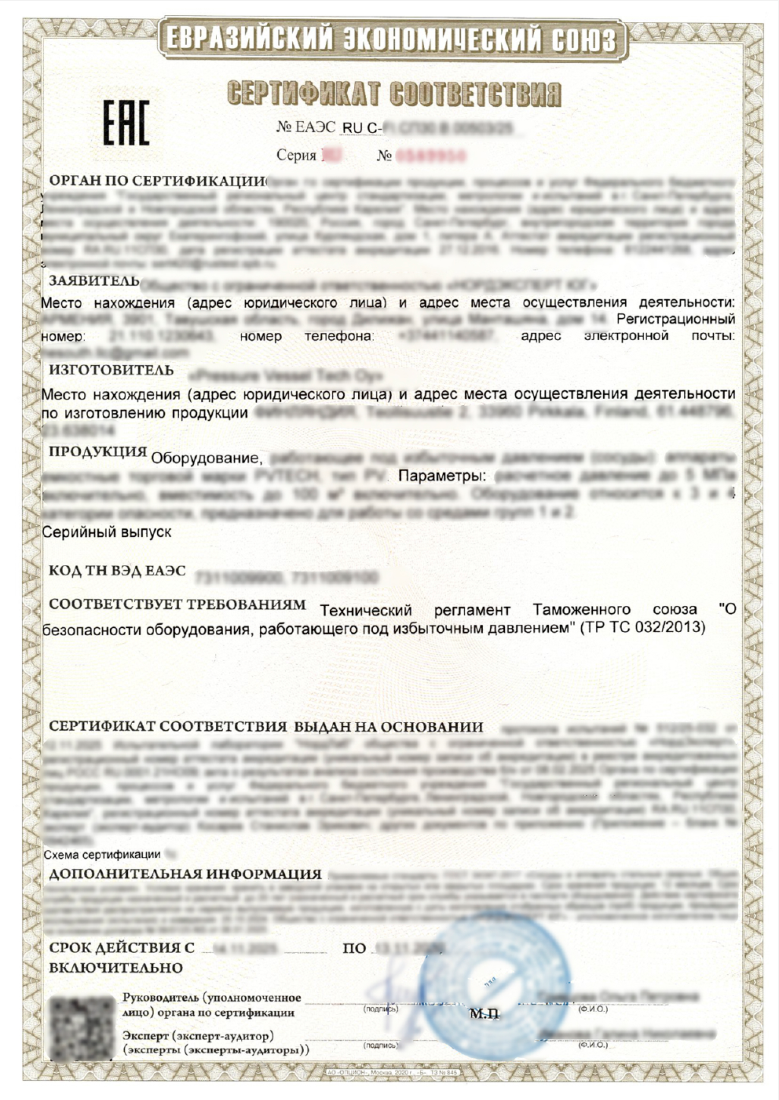 Thus, equipment delivered to the Eurasion Economic Union, as well as the equipment produced on its territory, must have valid and correct certificates (declarations).